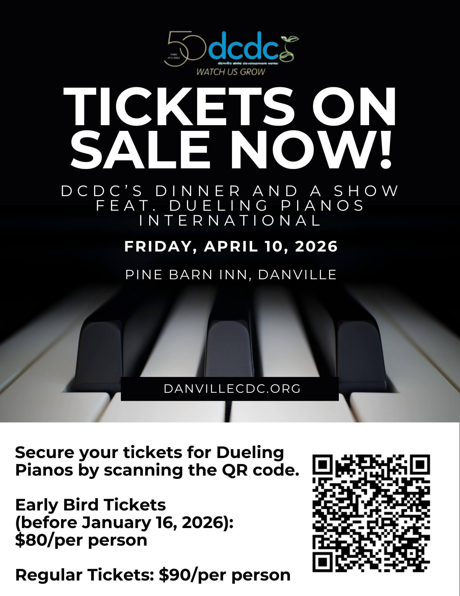Early bird pricing for DCDC’s Dinner and a Show featuring Dueling Pianos International is available through January 16, 2026, for the event taking place Friday, April 10, 2026, at the Pine Barn Inn in Danville. This special evening will combine live entertainment with dinner in a unique, high-energy setting. Click here to register. Click here to learn more about the event.